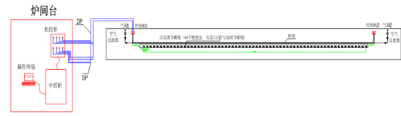 The machine control cabinet is arranged in the furnace room to connect all thermocouples; the machine control cabinet is connected to the central control cabinet of the central control room through the DP bus.