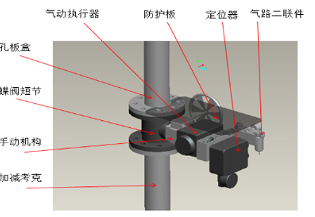 The control center sends a signal to the positioner, the positioner works to connect the air source, and the opening degree of the butterfly valve is adjusted to a suitable position by a pneumatic actuator (if there is no air source and no electricity, the manual mechanism can be adjusted manually To adjust the butterfly valve opening). When the opening degree of the butterfly valve is adjusted to the specified position, the positioner cuts off the power and keeps the butterfly valve in this position. Then the signal is transmitted to the control center, so as to realize the automatic adjustment of the single tube.