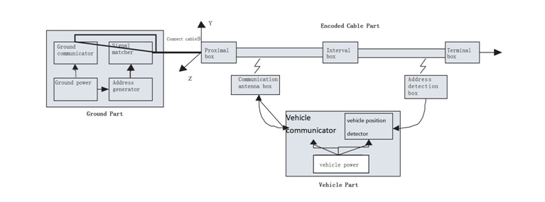 The communication part is used to communicate data between central control room and locomotives, the ground communicator modulates the central control room data into carrier signal then sends it to encoded cables, and then the vehicle communication antenna box receives signal and sends it to vehicle communicator for modulating data. Similarly, vehicle communicator modulates locomotive data into carrier signal and sends it to communication antenna box, the encoded cables receive signal and send it to ground communicator for modulating data, so as to realize data communication.